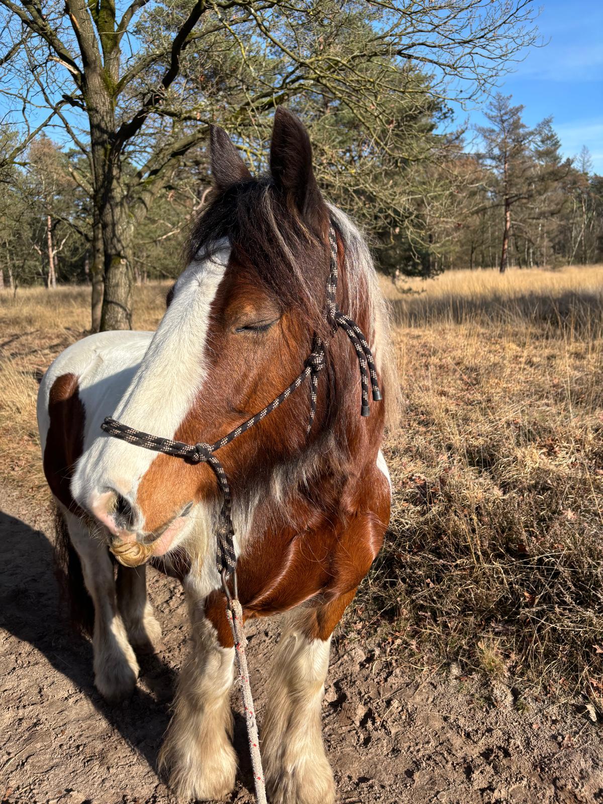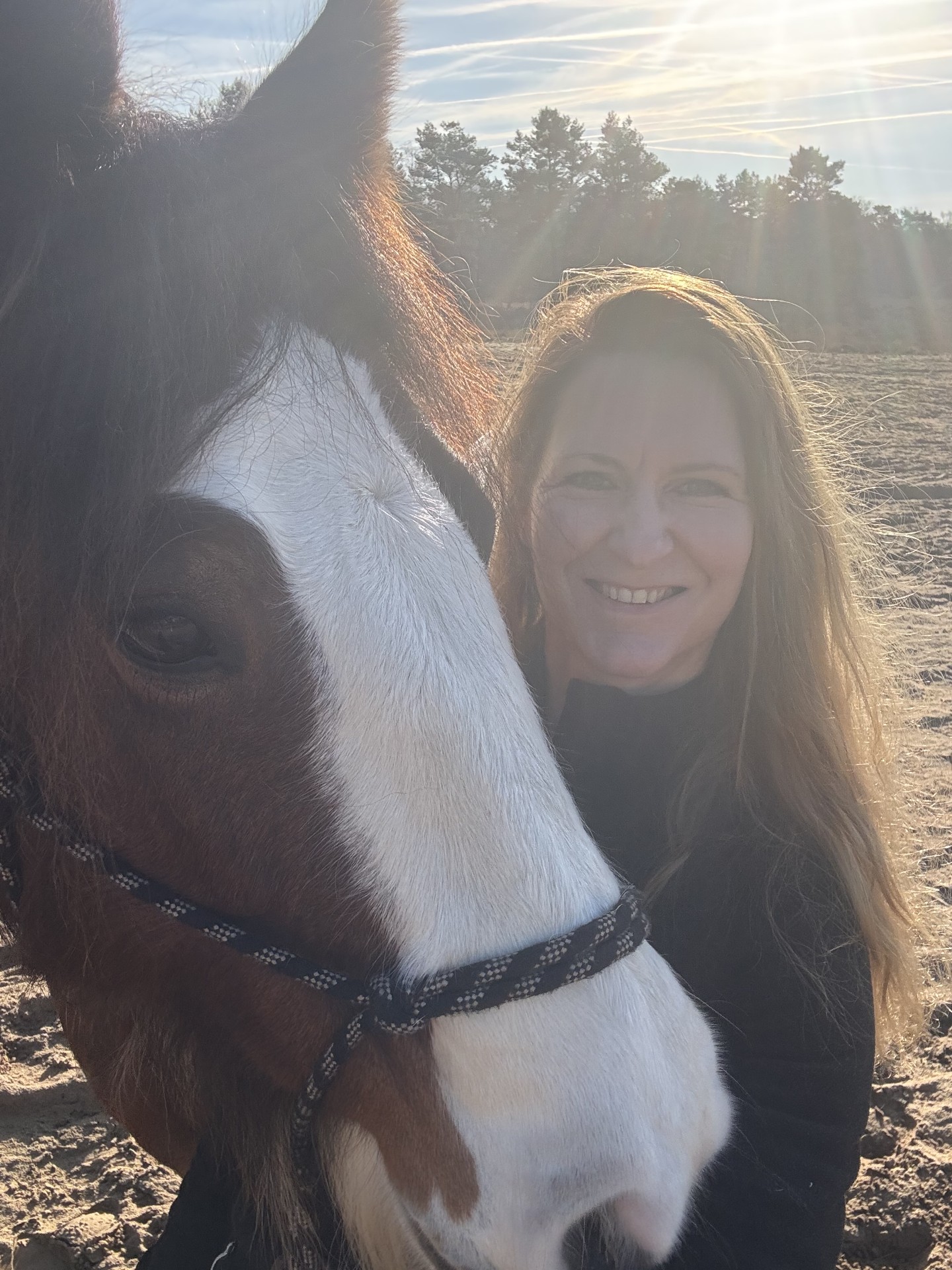 Co-regulatie betekent dat het zenuwstelsel van de ene levende wezen het zenuwstelsel van een ander helpt kalmeren of stabiliseren. Dat gebeurt automatisch, zonder dat je er bewust iets voor hoeft te doen. Ons zenuwstelsel is voortdurend bezig met het waarnemen van onze omgeving.  Volgens neurowetenschapper Stephen Porges reageren we sterk op signalen die veiligheid en rust uitstralen. Wanneer je naast iemand , of in dit geval een paard bent dat rustig en stabiel is, hoeft jouw systeem minder alert te zijn. Je lichaam merkt dat er geen directe dreiging is. En daardoor kan je schakelen naar een staat van meer ontspanning. Dat is niet iets wat je bedenkt, maar wat je voelt. Een paard leeft in het moment, Toby is niet bezig met wat er straks komt of wat er eerder gebeurde. Hij reageert op wat er nu is en tijdens het wandelen nodigt hij me uit om hetzelfde te doen. Hij vertraagt me, zonder me tegen te houden, vraagt niets, maar zijn aanwezigheid alleen al helpt me om uit mijn hoofd en meer in mijn lijf te komen. Dat is iets wat ik ook zie bij de mensen die met mij meelopen. In het begin zijn ze vaak nog in gedachten verzonken, maar gaandeweg verandert er iets. Hun stappen worden rustiger en hun aandacht komt meer in het hier en nu.